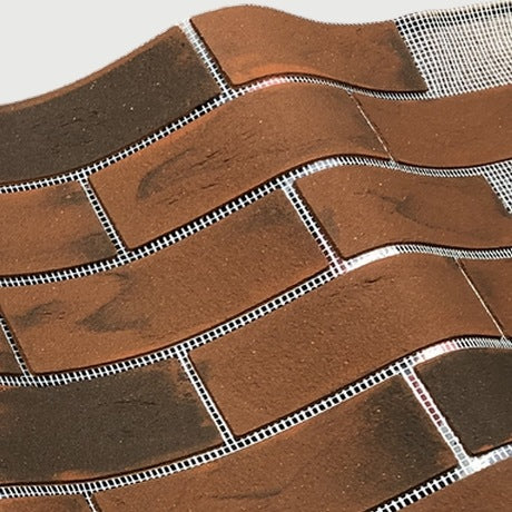 Фасадна облицювальна цегла на сітці із захисною плівкою на лицевій поверхні. Кожна цегла армована скловолокном і закріплена на лугостійкій фасадній сітці 160 г/кв.м тільки для стабілізації на поверхні.